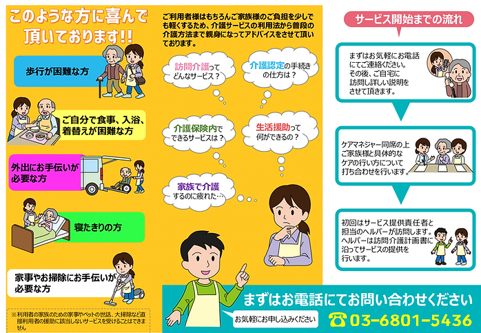 訪問介護サービスのご案内三つ折りパンフレットです。